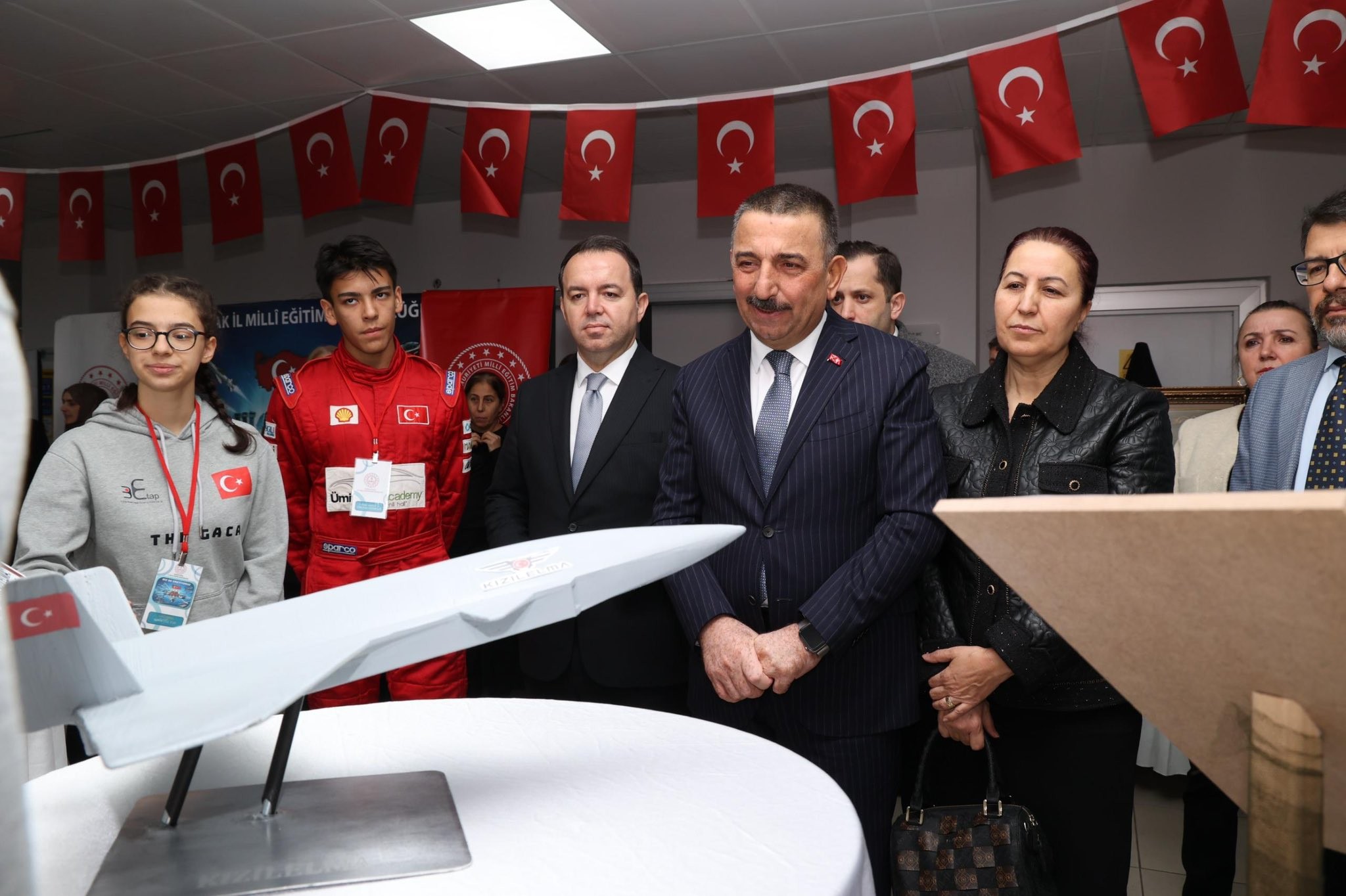 Vali Osman Hacıbektaşoğlu ve eşi Güney Hacıbektaşoğlu; İl Millî Eğitim Müdürlüğünce Tutum, Yatırım ve Türk Malları Haftası kapsamında “Biz de Üretiyoruz” temasıyla düzenlenen yerli ve millî teknoloji ürünlerimizin belirli oranlarda küçültülmüş maketlerinden oluşan sergi açılışına katıldı.
