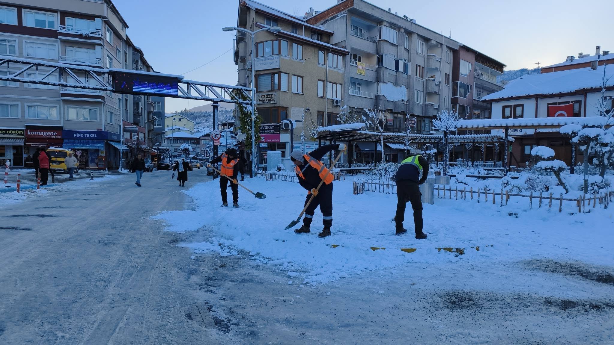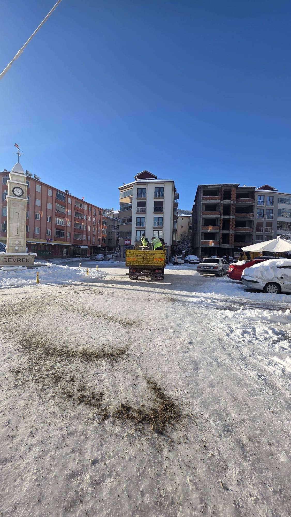 Devrek Belediyesi ekipleri, ilçenin dört bir köşesinde kar ve buzlanmaya karşı kar küreme ve tuzlama çalışmalarını aralıksız sürdürüyor.