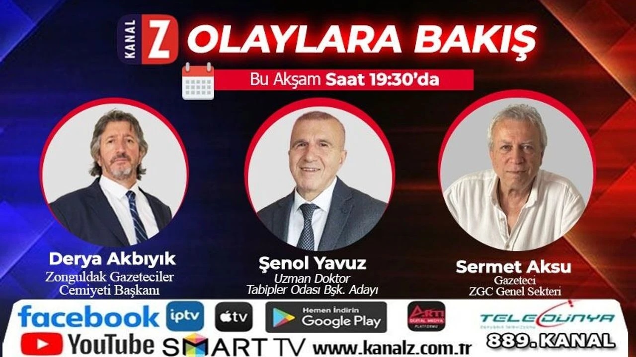 12 Nisan’da Tabip Odası Lokali’nde gerçekleştirilecek olan Zonguldak Tabip Odası Genel Kurulu’nda başkanlığa aday olan Nöroloji Uzmanı Dr. Şenol Yavuz, bu akşam saat: 19.30’da KanalZ canlı yayınında Olaylara Bakış programında hedeflerini anlatacak.