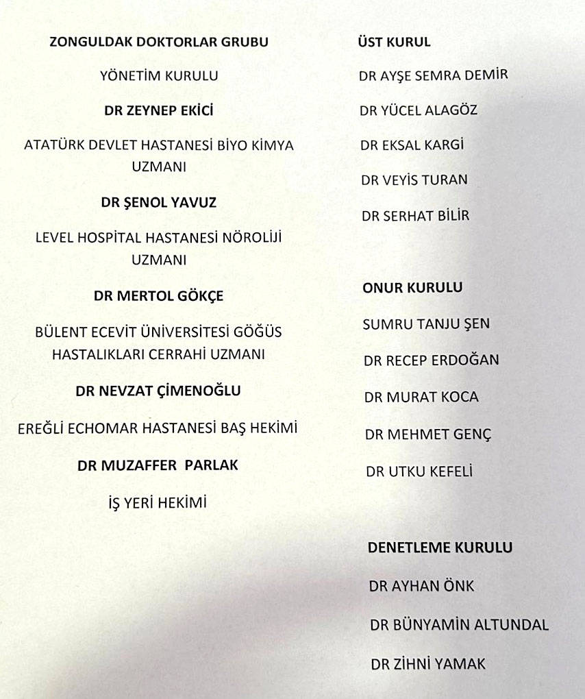 Zonguldak Tabip Odası’nın yönetim kurulu;